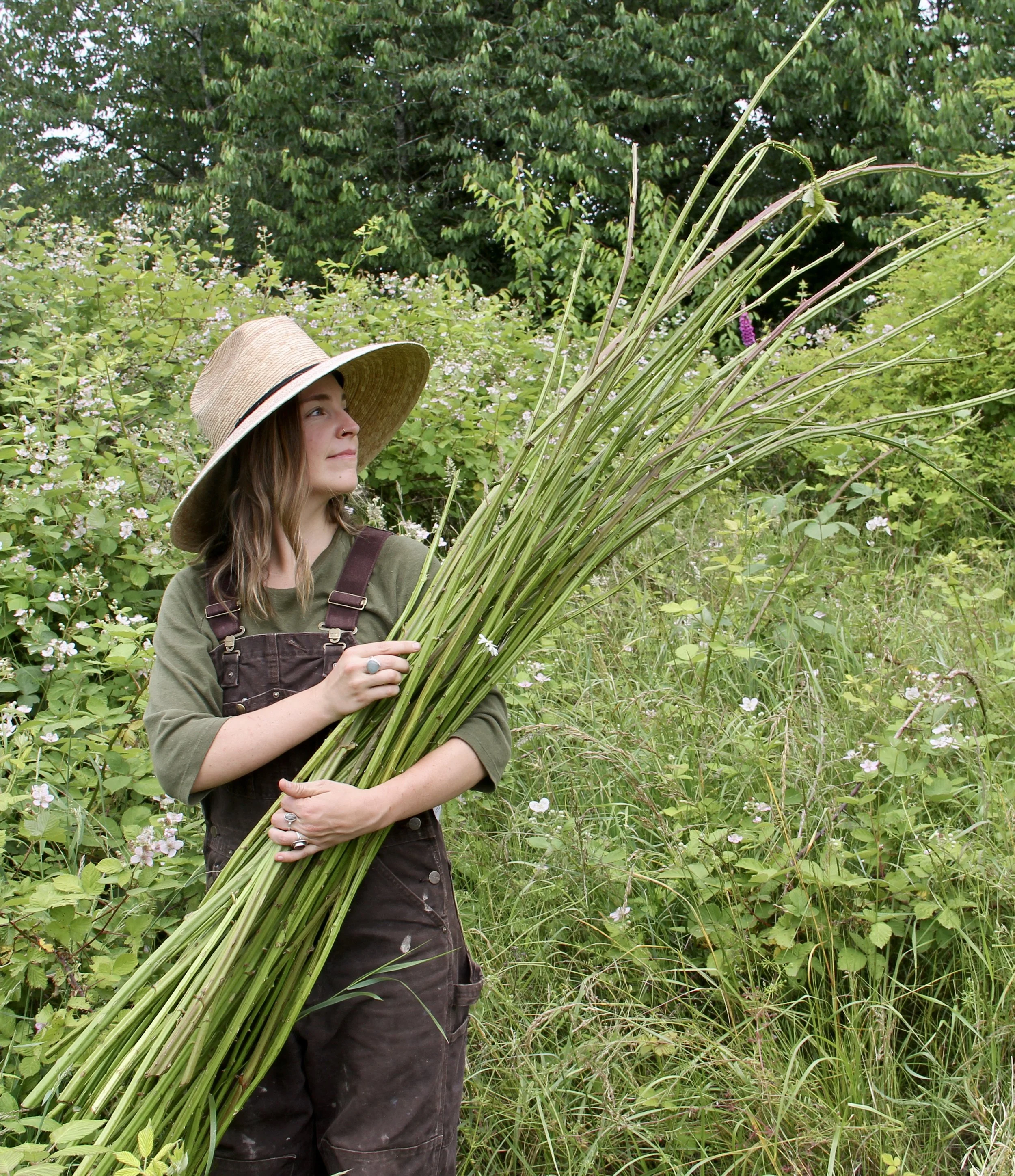Chloë Hight (she/her/hers) was raised by the flow of the Columbia River and twisting white oak trees in the small town of Hood River, Oregon. Her first memories grew from spending time immersed in the local landscape and have blossomed into a lifelong thread of creative inspiration. Chloë studied pottery and printmaking at Emily Carr University of Art + Design in Vancouver British, Columbia, Canada and has had many mentors along her creative journey. Her studies lead her to the small village of Teotitlan del Valle in Oaxaca, México to learn from Horacio Guitiérez, a woolen textile weaver and natural dyer. He and his family generously shared their knowledge of cloth and how each plant, hand spun skein of wool, and steaming dye pot was an expression of the story of his people and their deeply rooted relationship with place. This experience profoundly influenced Chloë’s artistic practice and she began searching for ways to deepen her relationship with creative materials and techniques that reflected the place where she lived. Chloë returned to Vancouver, BC and began an apprenticeship with the EartHand Gleaners Society studying under Sharon Kallis and Rebecca Graham to learn the process of growing and repurposing local and introduced plants for textile fiber, botanical dyes, and basket weaving material. Chloë returned to Oregon and is a practicing visual and teaching artist throughout the state. She works with local organizations such as, Rewild Portland, The Columbia Basin Basketry Guild, Portland Metro, and Wildcraft Studio School to create opportunities for children and adults to build deeper relationships with place through visual art and innate traditional hand technologies.
